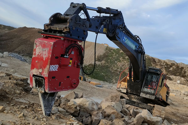 Accessoire hydraulique performant, la plaque vibrante est spécialement conçue pour fragmenter les roches de surface, notamment celles déjà fissurées, en carrière ou sur chantier de terrassement.